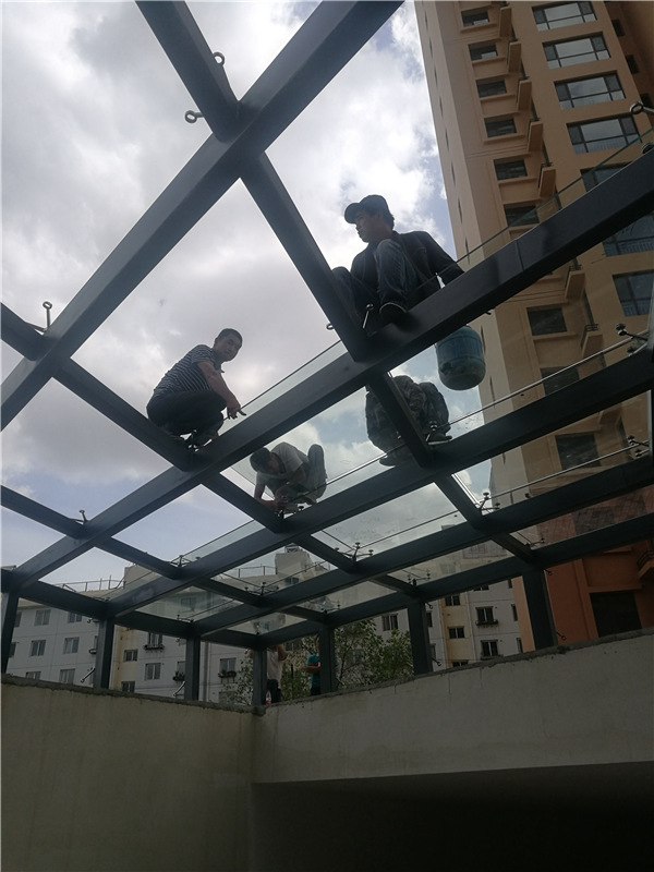 西安玻璃雨蓬在施工中