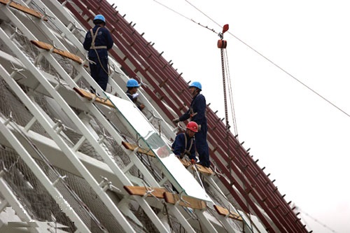 西安玻璃幕墻能防雷?怎么防?下面小編來給你說說玻璃幕墻的防雷措施。通常建筑物的防雷裝置有三部分:接閃器、引下線和接地裝置。在玻璃幕墻的防雷設計中,應充分利用建筑物的這些裝置,將幕墻豎向龍骨、橫向龍骨和建筑物防雷網接通,連成一個防雷整體,把玻璃幕墻獲得的巨大雷電能量,通過建筑物的接地系統,迅速地輸送到地下,保護玻璃幕墻和建筑物免遭雷電破壞的作用。高層建筑玻璃幕墻的頂部的女兒墻的蓋板,是人為地設立的良好導體,它沿建筑物女兒墻的頂部分布,其電場強度很大。雷電先驅很自然地被吸引過來,是雷擊率最大的部位。...